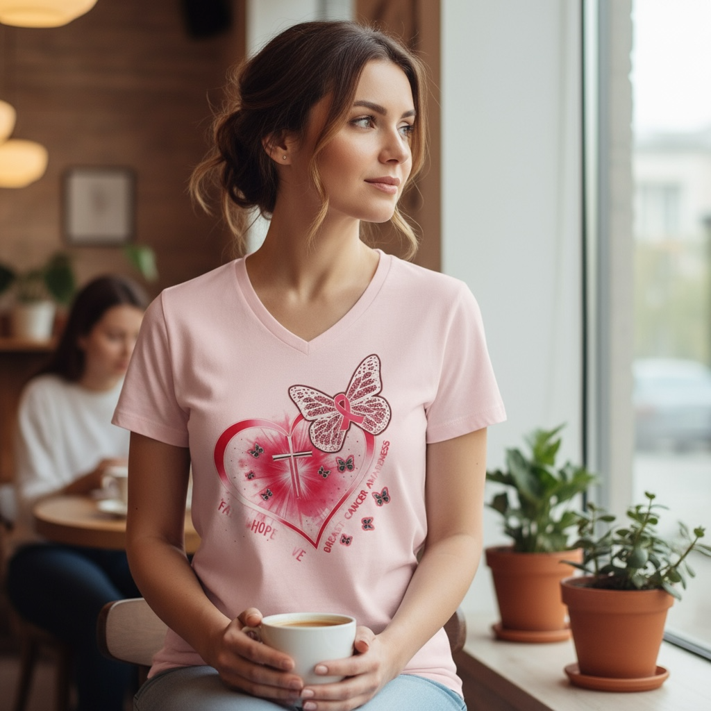 This FAITH HOPE LOVE T-Shirt is the perfect way to show your support for Breast Cancer Awareness. Made with comfortable material, it features the powerful message of faith, hope, and love. Spread awareness and inspire others to join the fight with this impactful t-shirt.