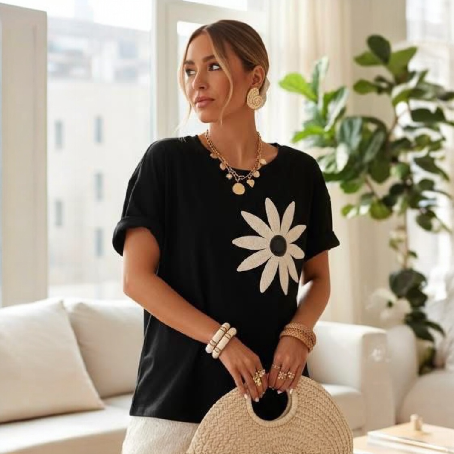 The bold black of Moonlit Daisy 🌙, will keep you feeling cute, comfortable, and ready for anything!