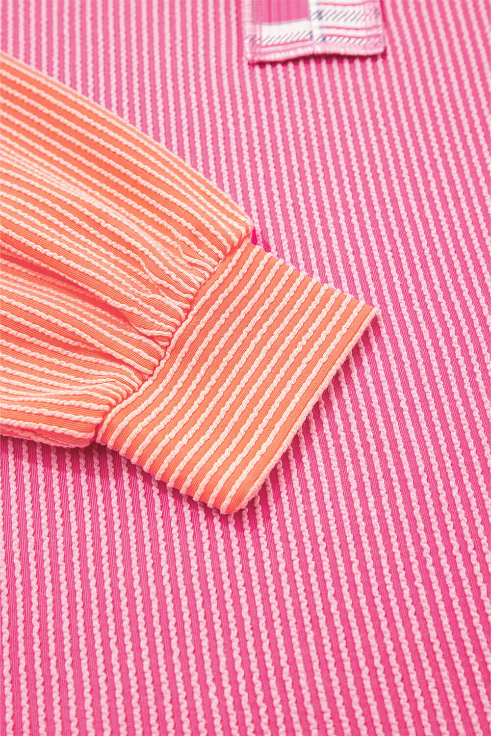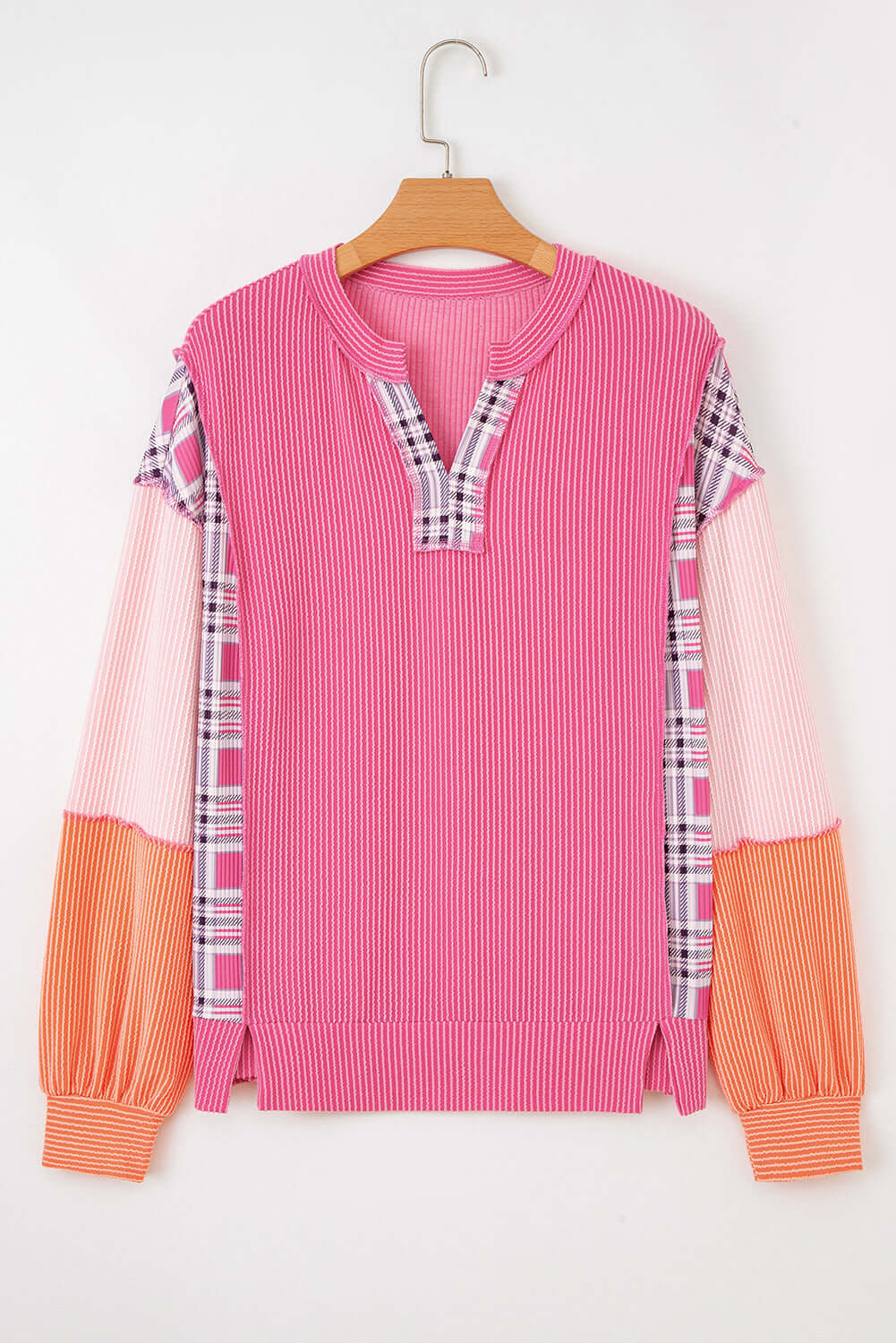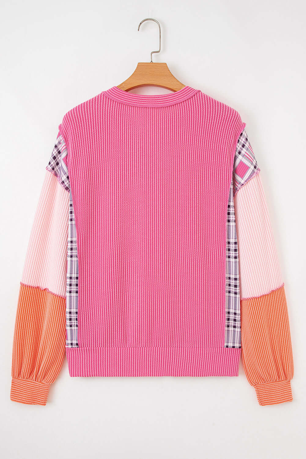 Add a cheerful pop of color to your everyday style with the Pink Parkway Ribbed Pullover! Featuring a playful mix of pink, plaid and colorblock patchwork, this top blends soft texture with bright personality. The corded ribbed fabric gives it that extra touch of coziness and dimension you’ll love season after season.
