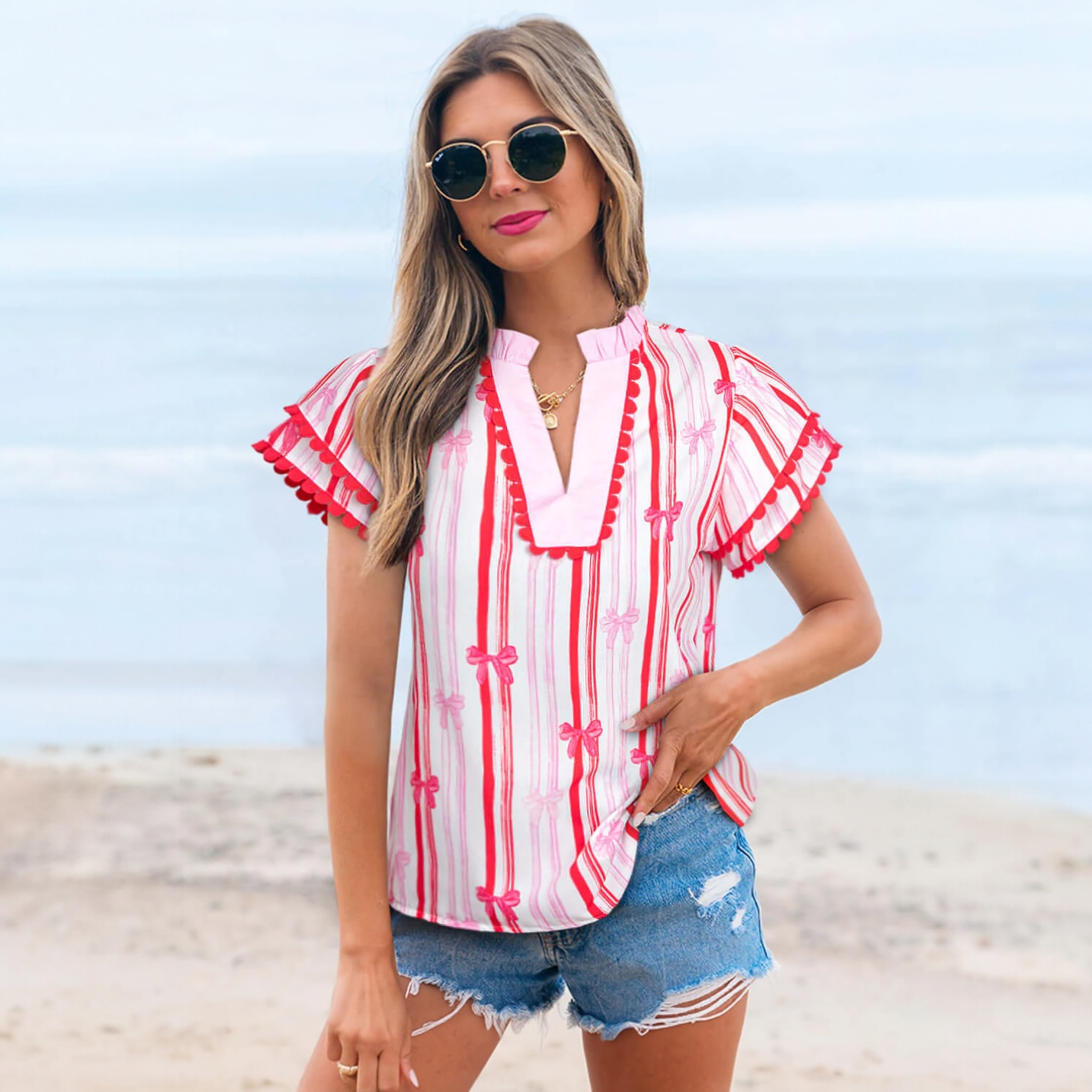 From beach boardwalks to brunches with your besties, the Ribbon Reign Top keeps things cute, comfy, and always on trend. Pair it with denim shorts or white skinnies for a look that rules the day.