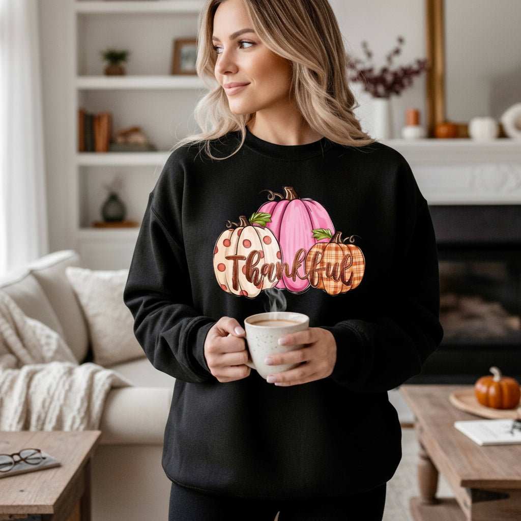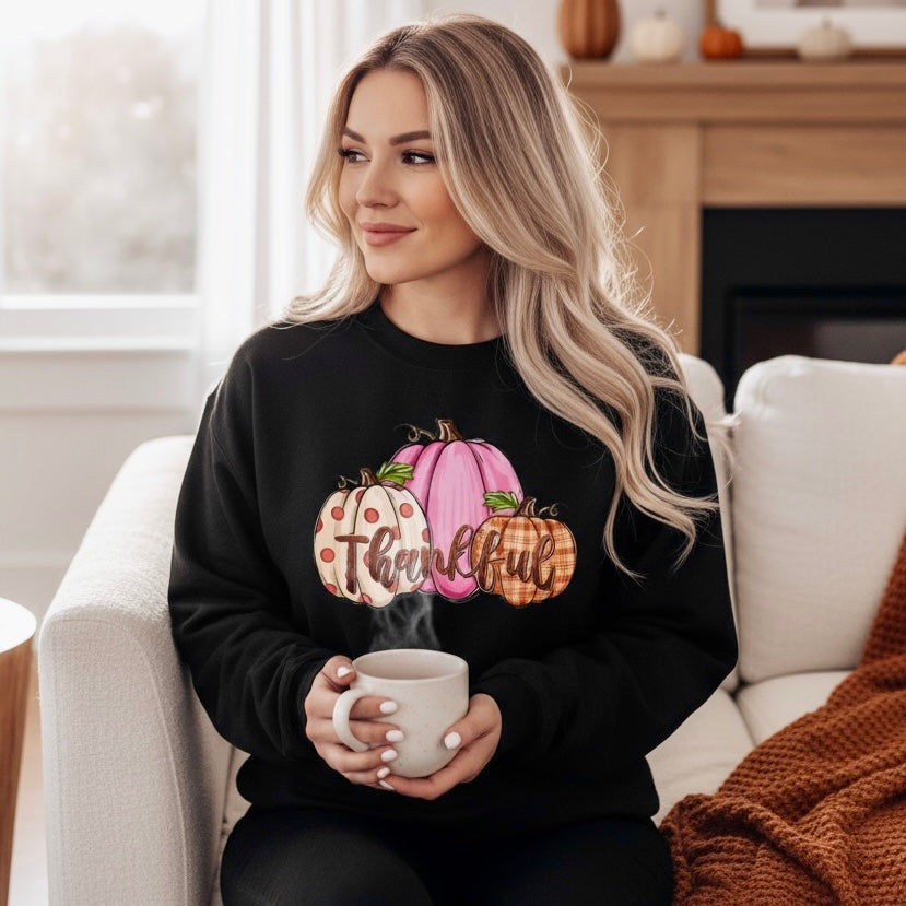 Get festive with our So Thankful crewneck, perfect for cozy and casual Thanksgiving wear. The relaxed fit and playful "Thankful" message, accompanied by a pumpkin graphic, will have you feeling grateful all holiday season. Rock it with jeans or leggings for a comfortable and super cute holiday look.