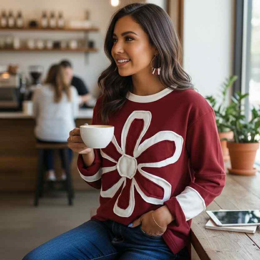 Cozy, charming, and full of fall personality — the Fireside Dahlia Top brings together rich burgundy tones with a cheerful floral patchwork design that instantly brightens your look. Soft, stretchy, and perfect for everyday wear, this is the top you’ll reach for again and again. ❤️🌼