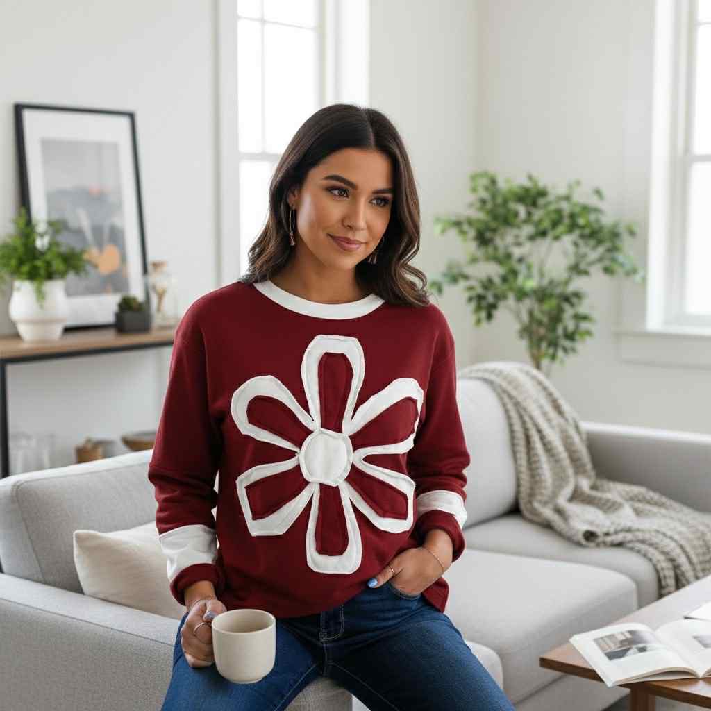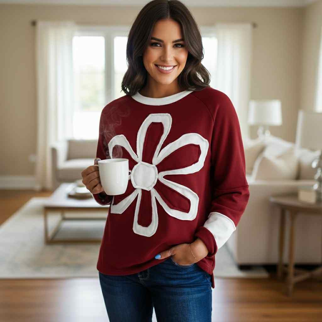 🔥 Fireside Dahlia Top – Burgundy 🌺