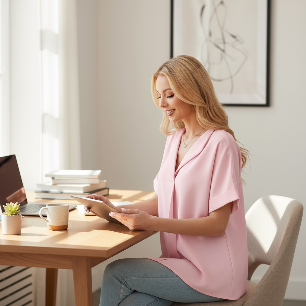 Embrace easy, everyday chic with this solid top crafted from 100% polyester for a smooth, wrinkle-resistant finish. The clean collared neckline and relaxed short sleeves create a modern, versatile silhouette that pairs effortlessly with jeans, trousers, or skirts. Whether you’re heading to the office, brunch with friends, or a casual weekend outing, this breezy design keeps you looking polished and feeling comfortable all day long. Beautiful pink color. Great for teens and ladies of all ages!