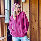 Wrap yourself in the rich raspberry hue of this soft, corded urban ribbed hoodie! The Raspberry Retreat is crafted from a stretchy ribbed fabric with the perfect relaxed fit for everyday comfort.