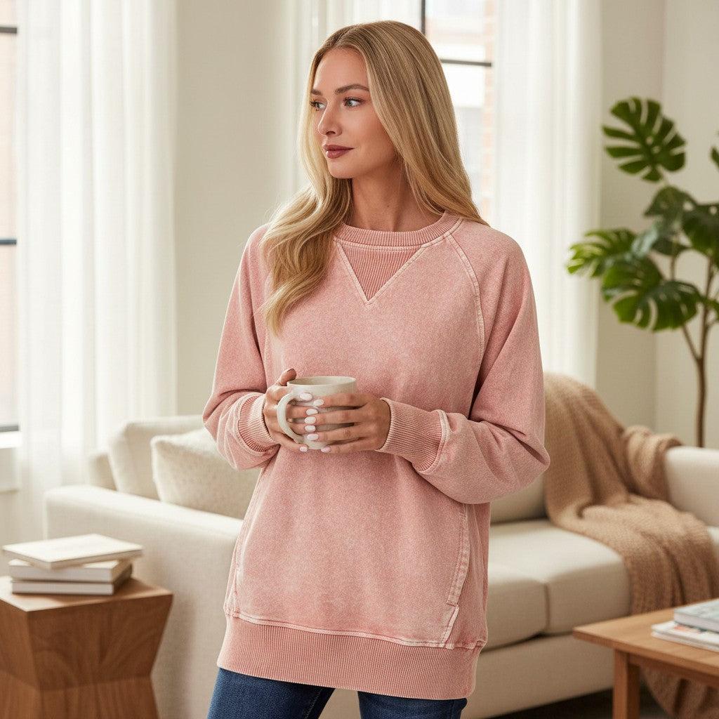Meet your new go-to cozy essential! The Everyday Delight Pullover brings that effortless, lived-in charm with its unique mineral wash and soft halo-washed French terry feel. This one is comfy, stretchy, and loaded with details your customers LOVE! 🙌💕
