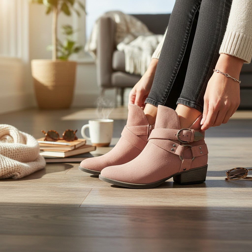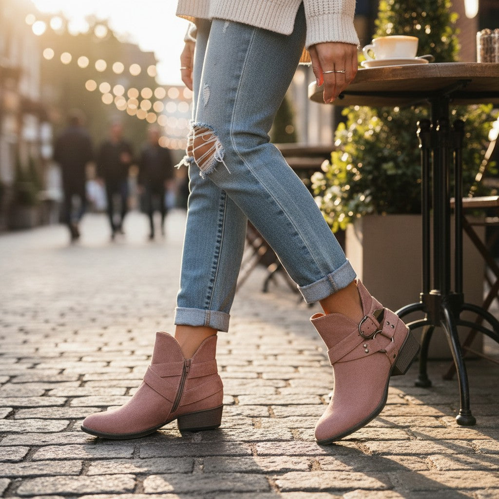 Fall in love with the soft blush-toned rose tan that instantly complements denim, dresses, and everything cozy! The Caroline Bootie by Very G features a comfy squishy footbed, stylish side buckle, and easy zip-up design — making it an everyday favorite you’ll want in every outfit rotation. 💃✨