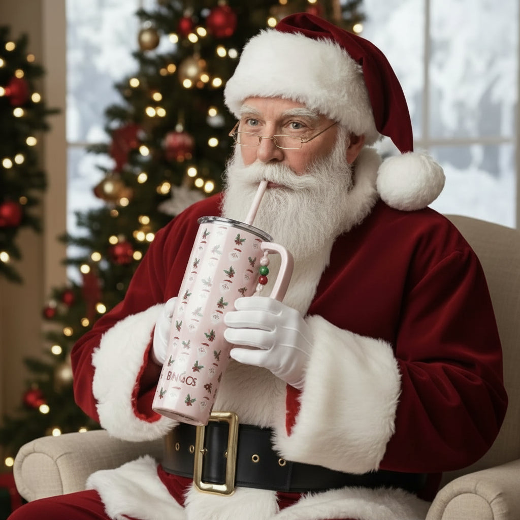 Your new holiday go-to for BIG sips and all-day temperature control! This adorable pink Santa-and-holly print makes every drink feel like Christmas morning. Perfect for gifting, traveling, or keeping your water cold all day long!
