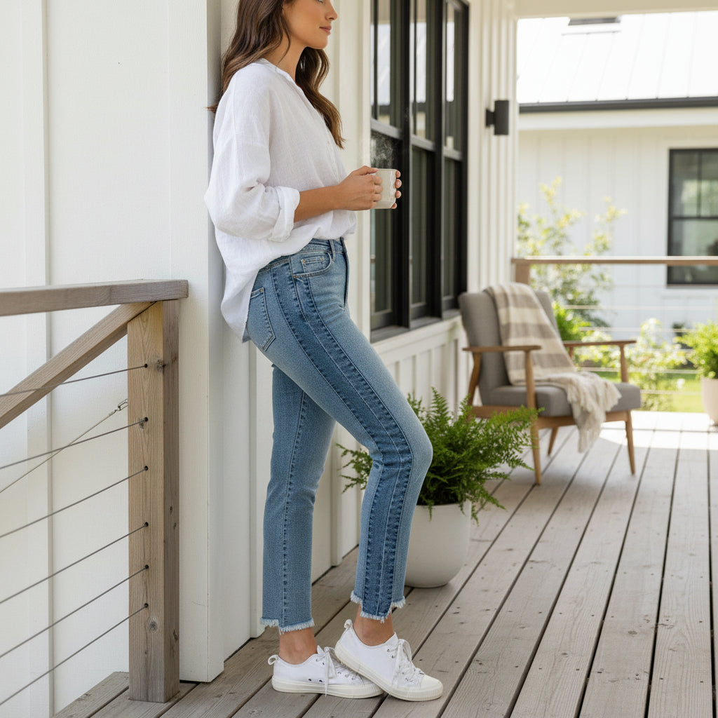 🧼 Care Instructions: Hand wash and line dry to keep the wash crisp and the fray looking fresh.
