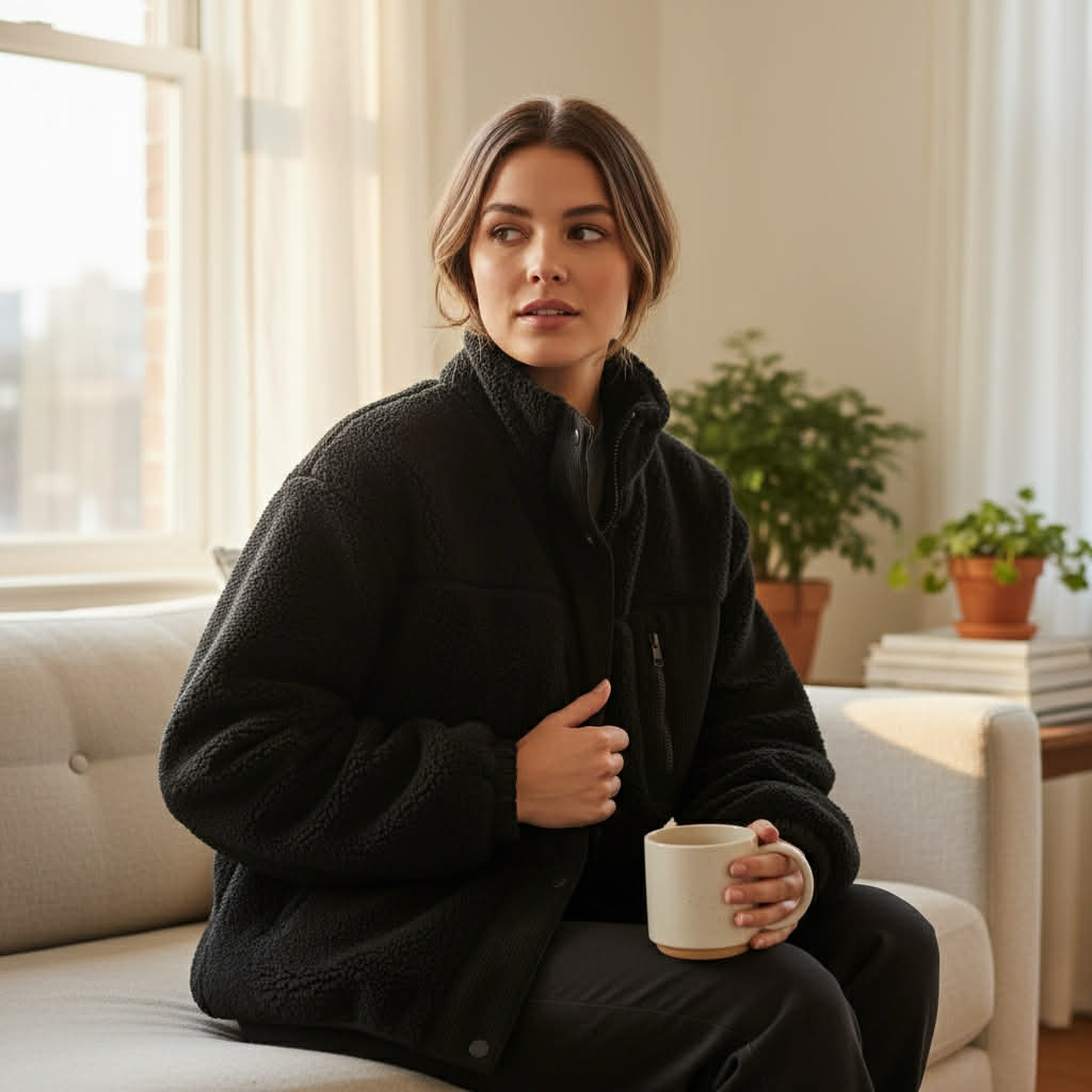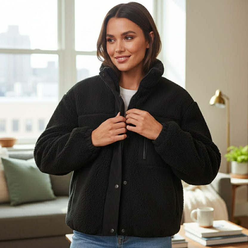 Warm, soft, and stylish without being bulky — the Midnight Haven Sherpa Jacket is a grab-and-go essential you’ll reach for every day.