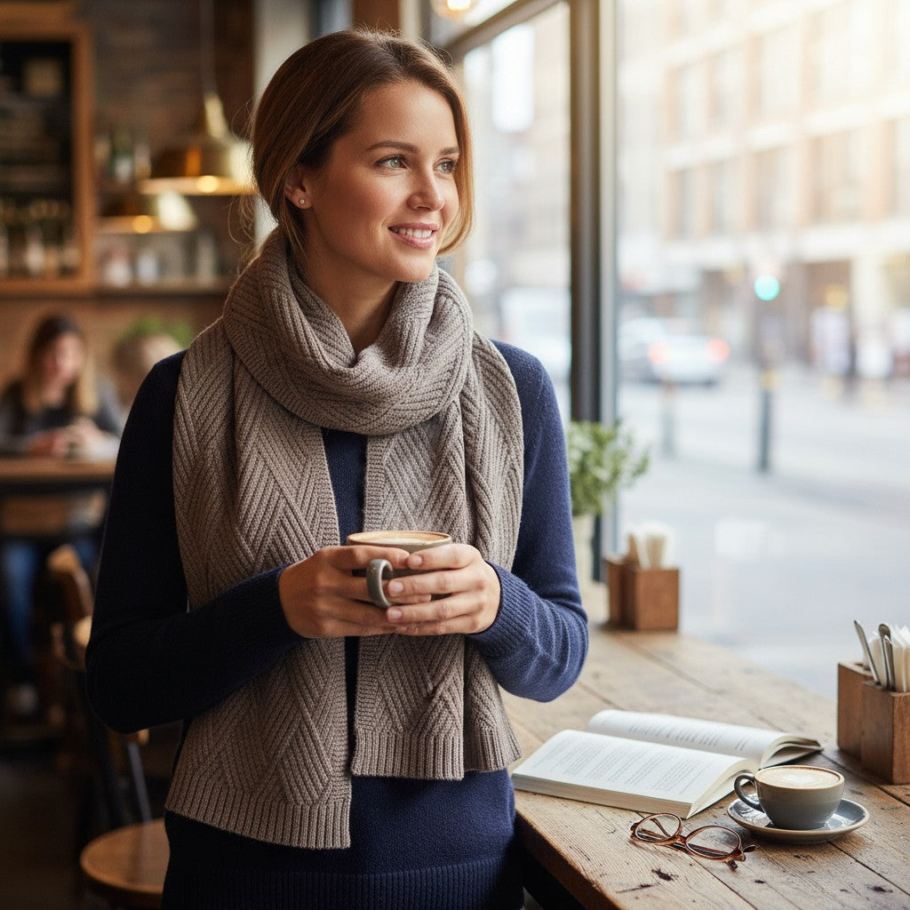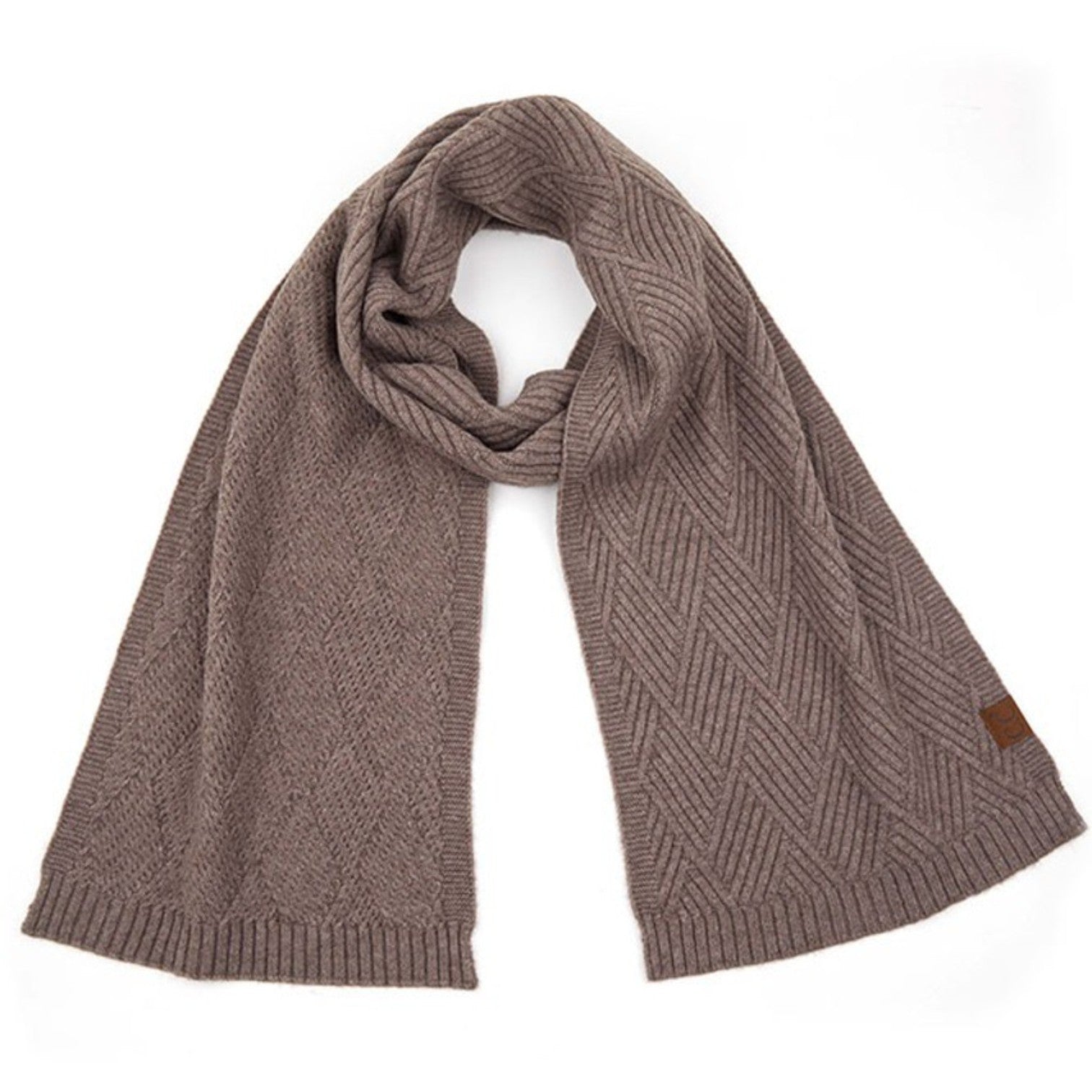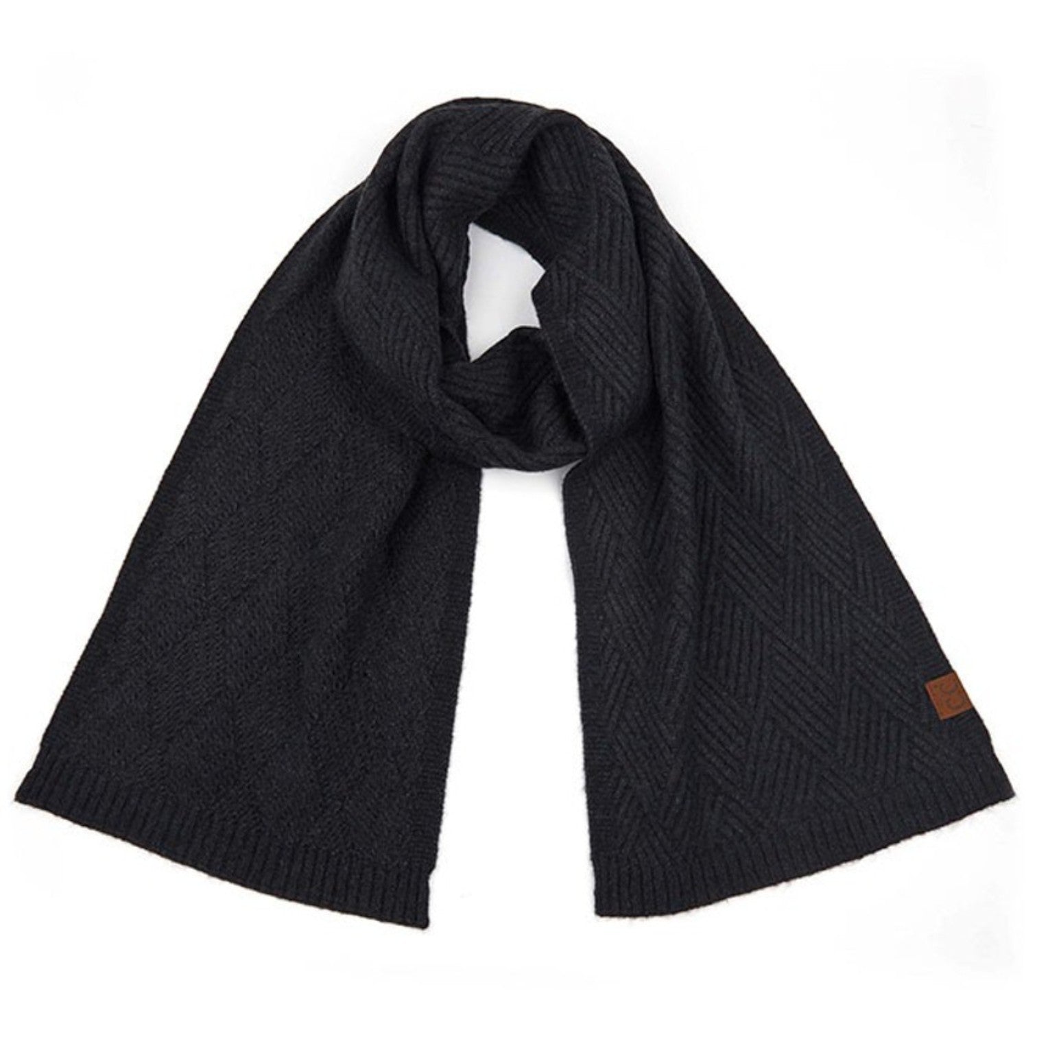 Wrap yourself in cozy sophistication with this beautifully textured scarf from C.C. Exclusives! The diagonal criss-cross knit pattern adds a timeless, sweater-like charm that’s perfect for chilly days and stylish layering.