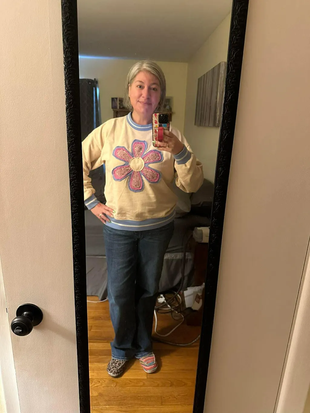 Appliqué patch daisy detail on front